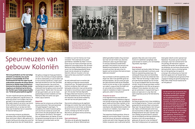 In de Kamerbode (9-2021), het interne nieuwsblad van de Tweede Kamer der Staten-Generaal, is een interview verschenen met Natasja Hogen en Jacqueline de Graauw (Bureau Bouwtijd) over het bouwhistorisch onderzoek dat zij eerder dit jaar in opdracht van het Rijksvastgoedbedrijf verrichten naar gebouw K, het voormalige Departement van Koloniën, ter voorbereiding op de renovatie van het Binnenhof. Het volledige interview is hier te lezen.